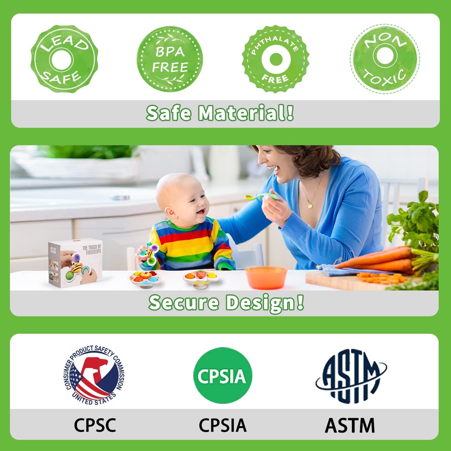 • 【FREE YOUR HANDS】Put on one ALASOU spinner on the fridge so kids has something to play with while you are cooking
